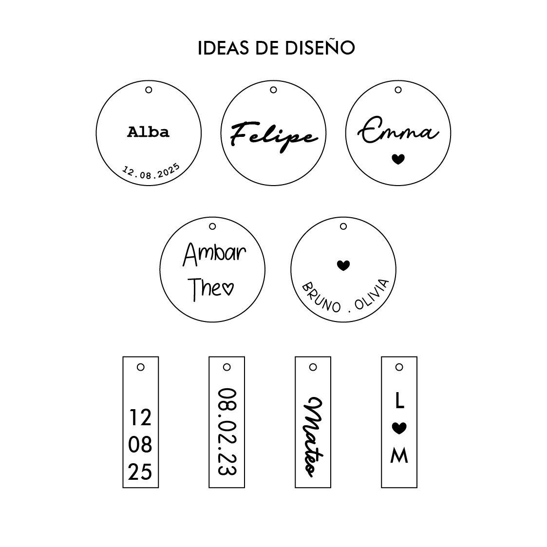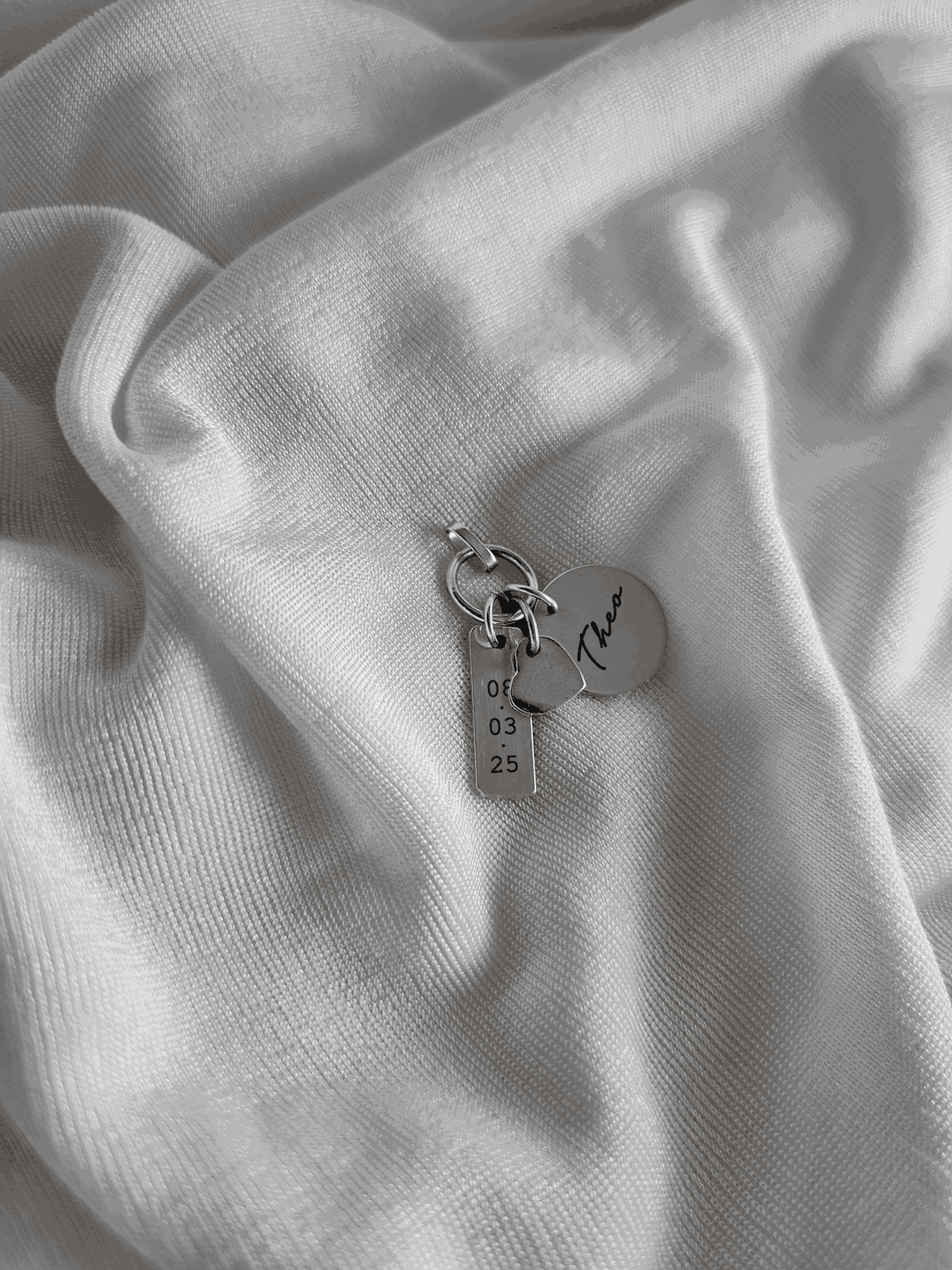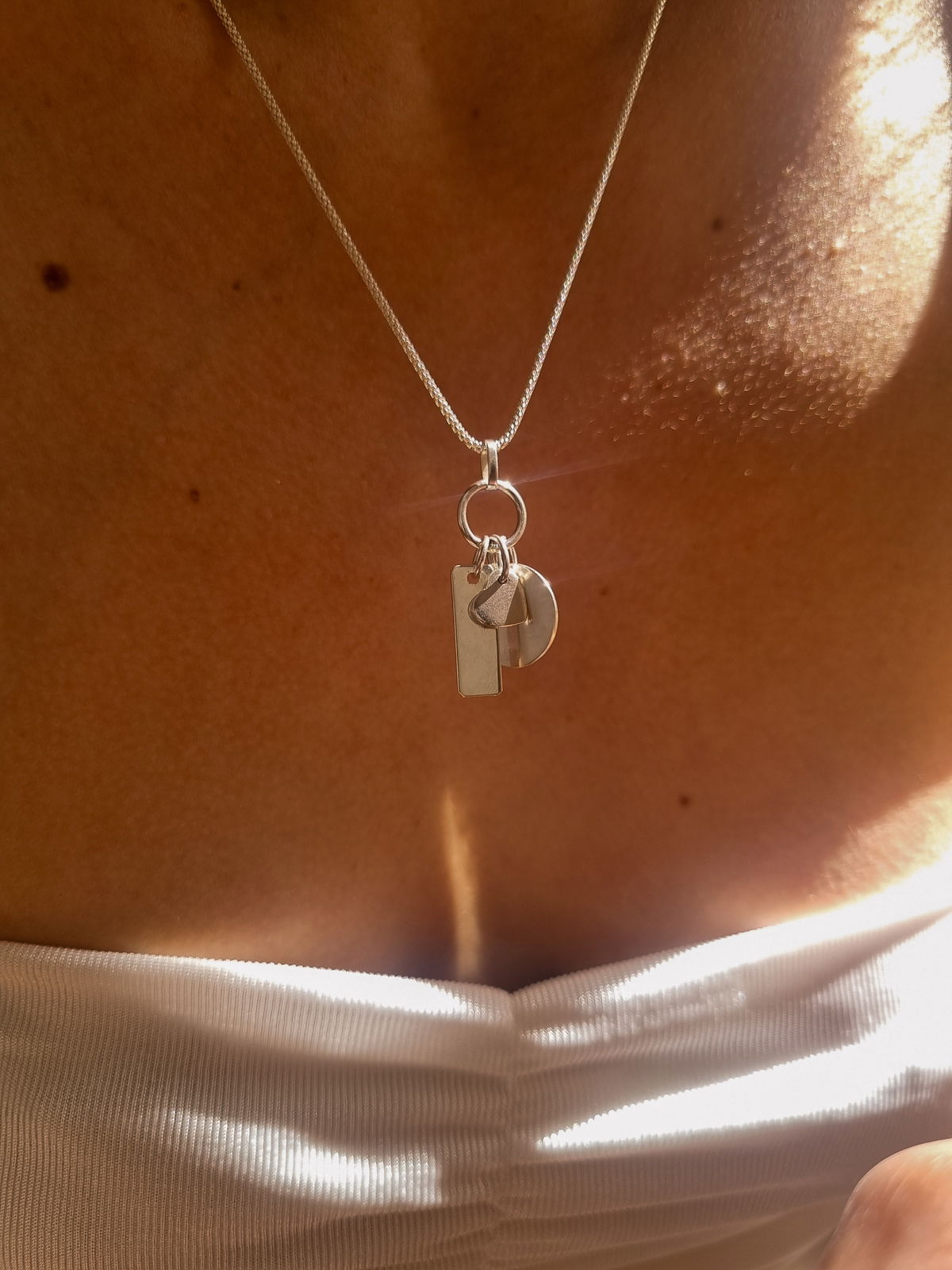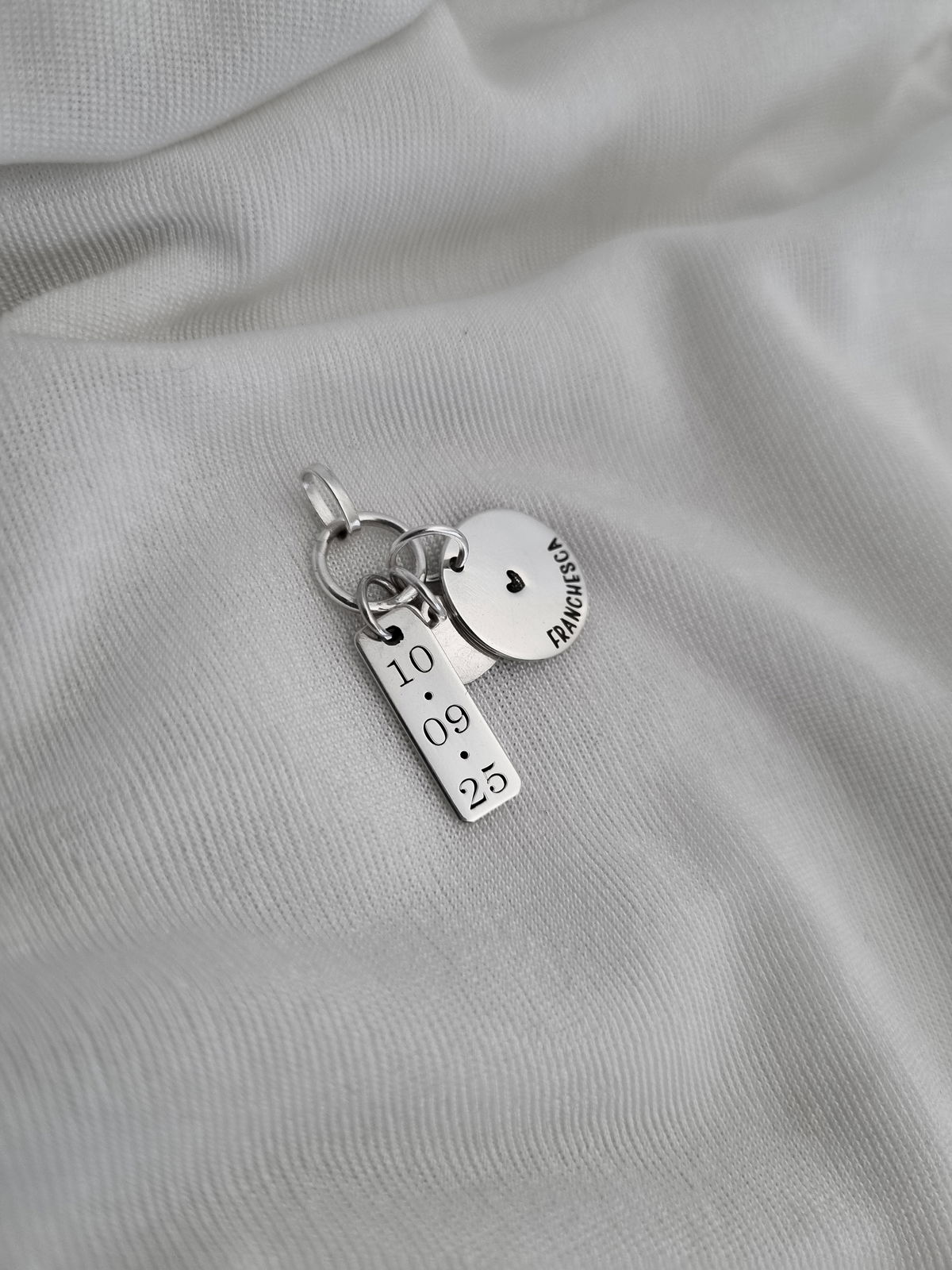 Set de dijes (chapita circular, corazon y chapita rectangular)