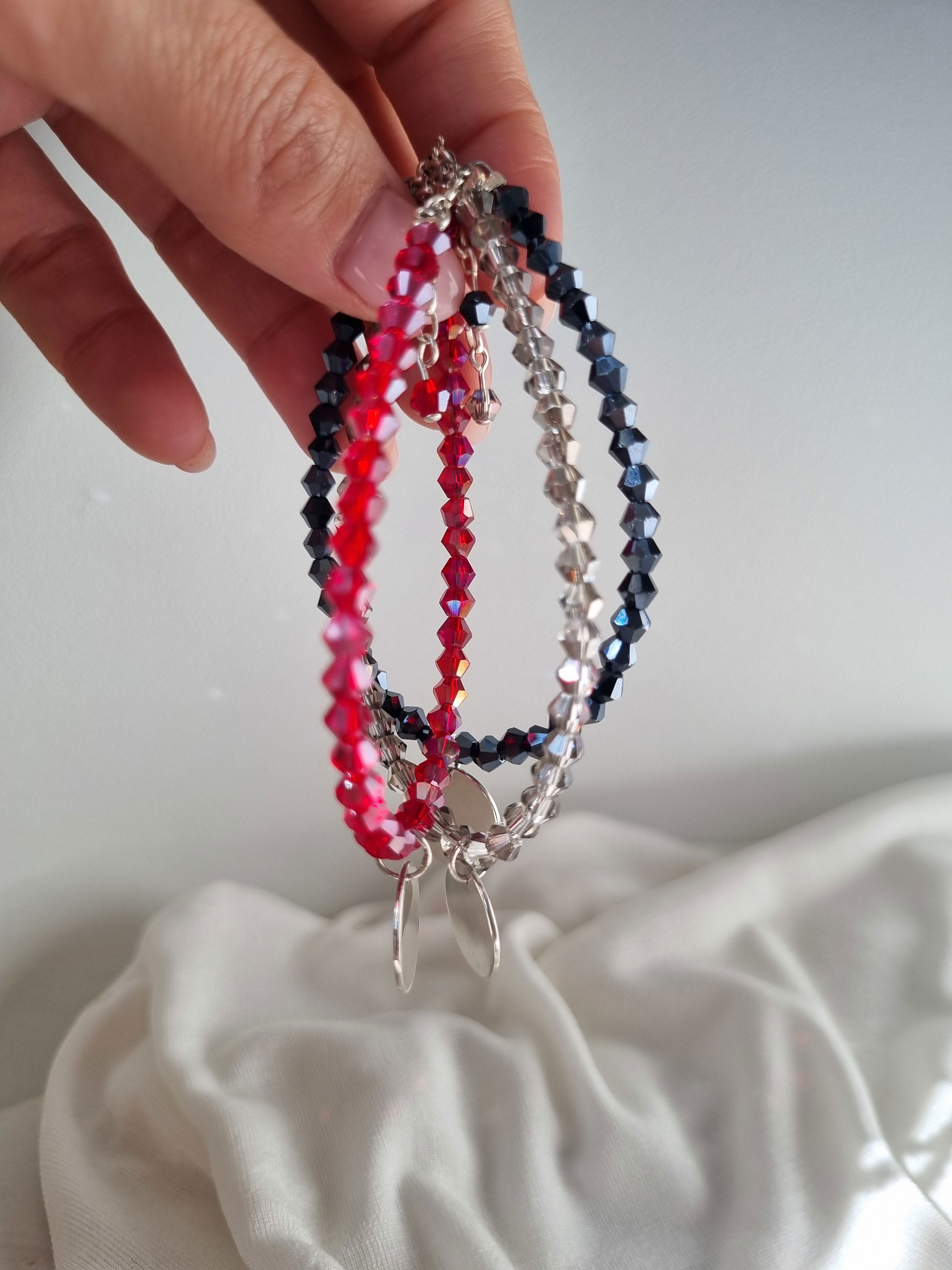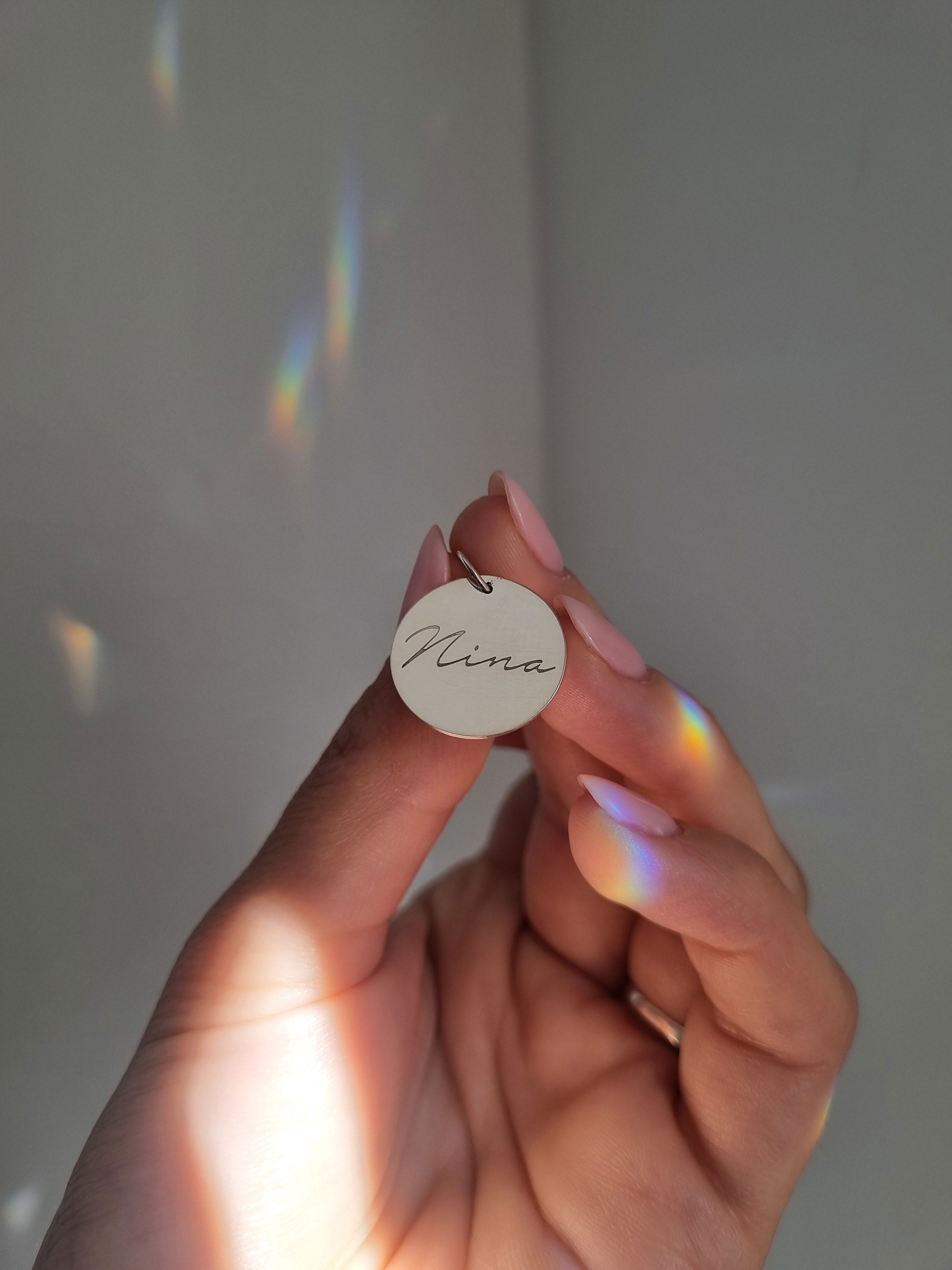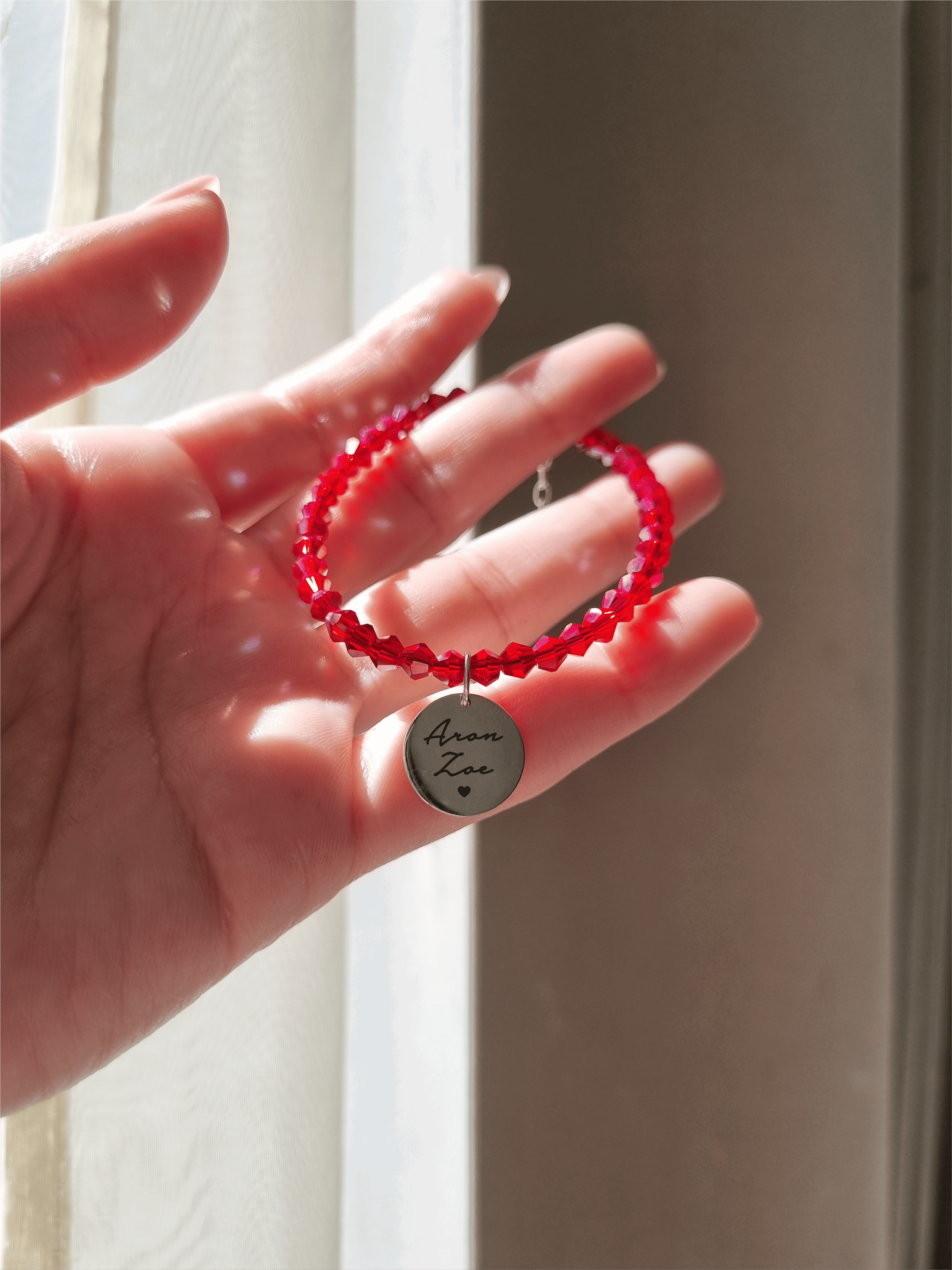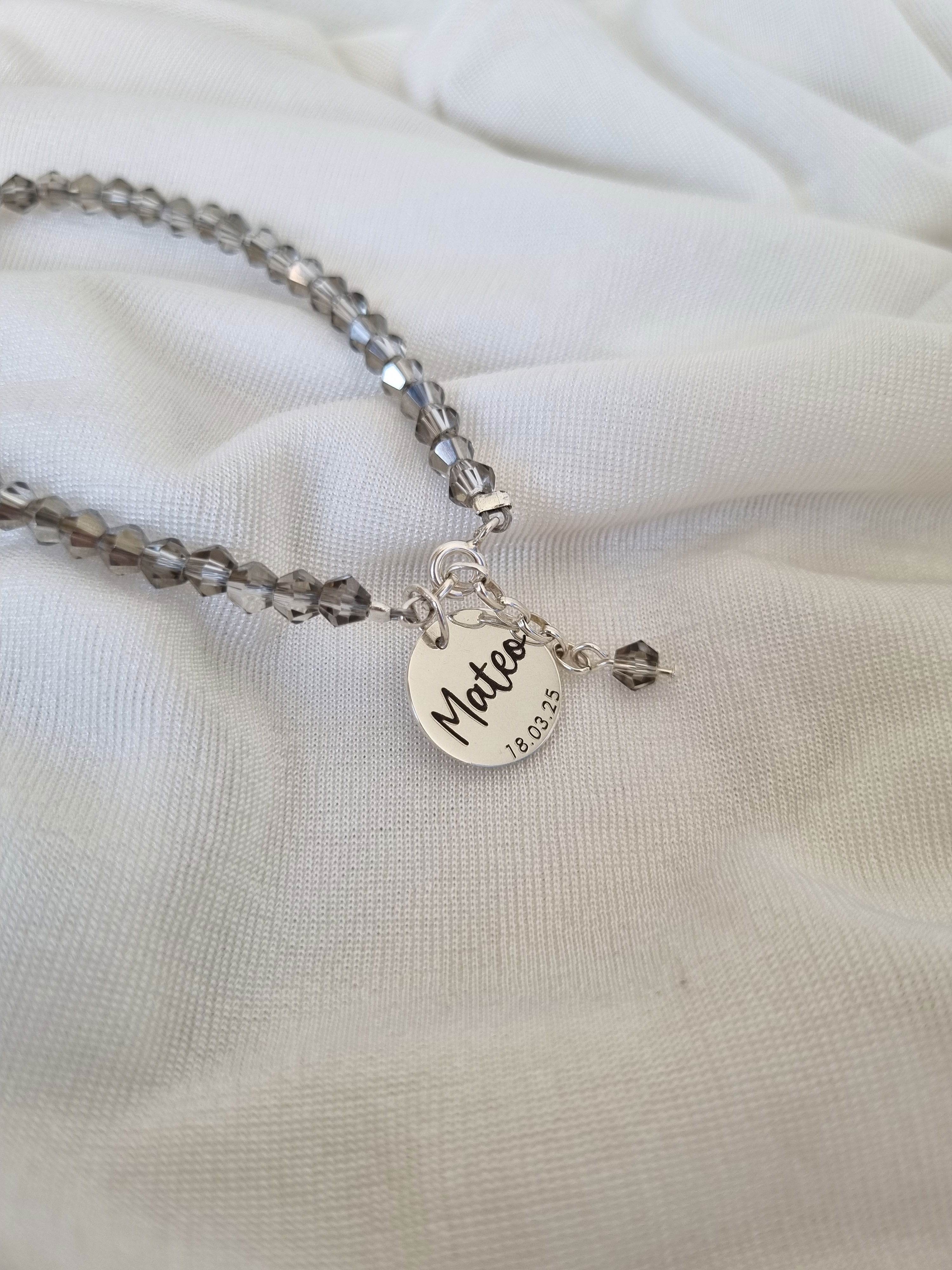 Pulsera Cristal de roca 4mm + chapita circular 14mm plata 925
