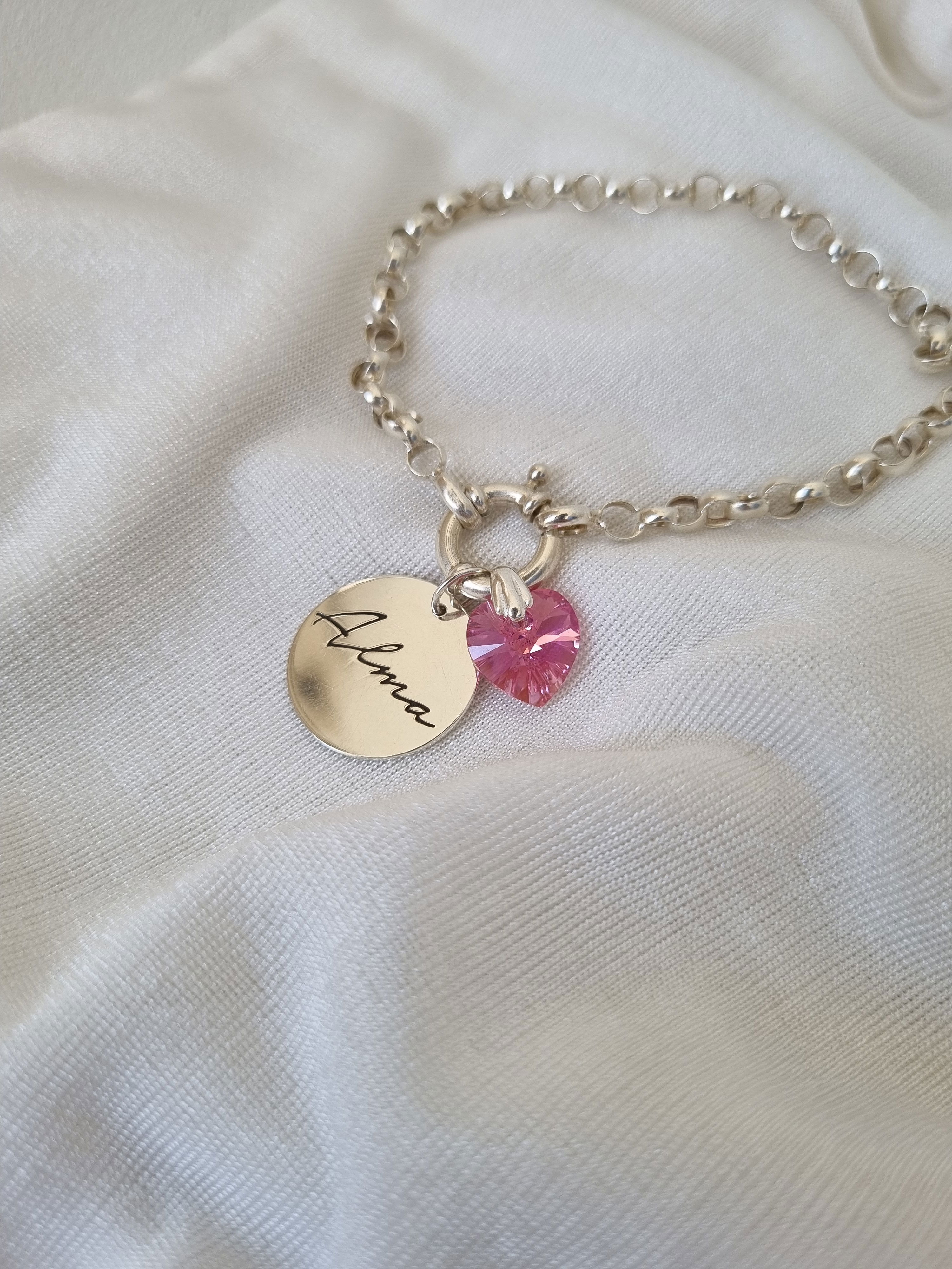 Pulsera rolo cierre marinero + Dije circular 14mm + dije cristal.